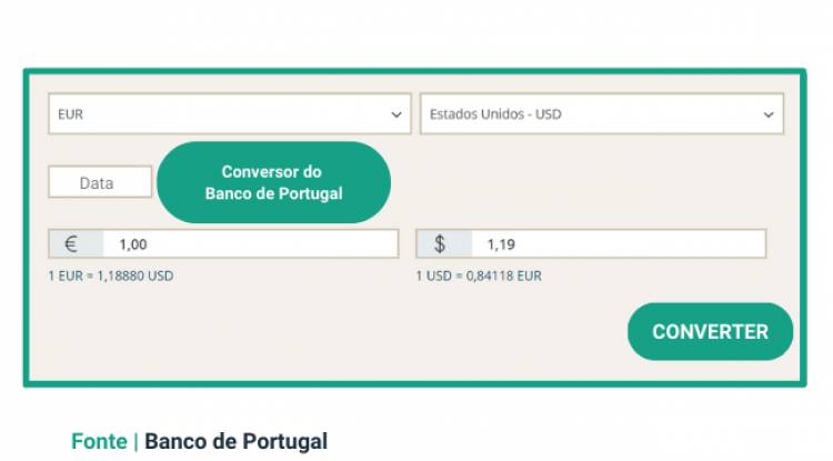 Os cálculos são efetuados com base nas taxas de referência diárias publicadas pelo Banco de Portugal e pelo Banco Central Europeu.